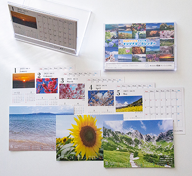 北海道から九州まで各部署の社員が、旅先や自宅近くで撮影した季節感を感じられる風景写真のカレンダーです。